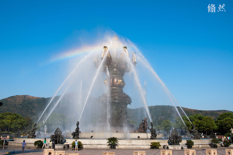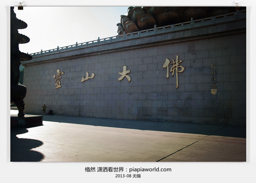 午饭就在城隍庙附近的一家酒店吃的,午饭后直接驱车来到无锡的灵山大佛,一路上奔驰在江南全封闭的高速公路上,各色广告牌光怪陆离,两边或乡村或城镇都是富足殷实,洋房院套错落有致,一派欣欣向荣的景象,我一脸的自豪感地指点给孩儿们看,不一会儿孩儿们便分别昏睡过去了。到灵山大佛已经是3点半了。此时正是烈日高照,此处更是无遮无挡,我们下车便猛喷防晒霜,大扇子狂扇不止。