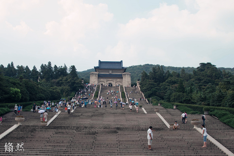 就这样一上午过去,吃了饭,导游又在蠡湖边给我们停下来拍几张照,然后就出发奔向南京。3:30到了南京中山陵,这叫一个热呀!望着几百级的台阶,我头皮发麻,两腿发软还是决心不上去了,也因为以前来过两次,想那墓室里也不会换成别人。那爷仨第一次来,不畏酷暑一级一级地爬上去了。 我坐在山下等。等到他们仨下了山,都已经是汗如雨下了,赶忙各种冷饮解暑,那个酸甜的山楂冰果真是好吃。