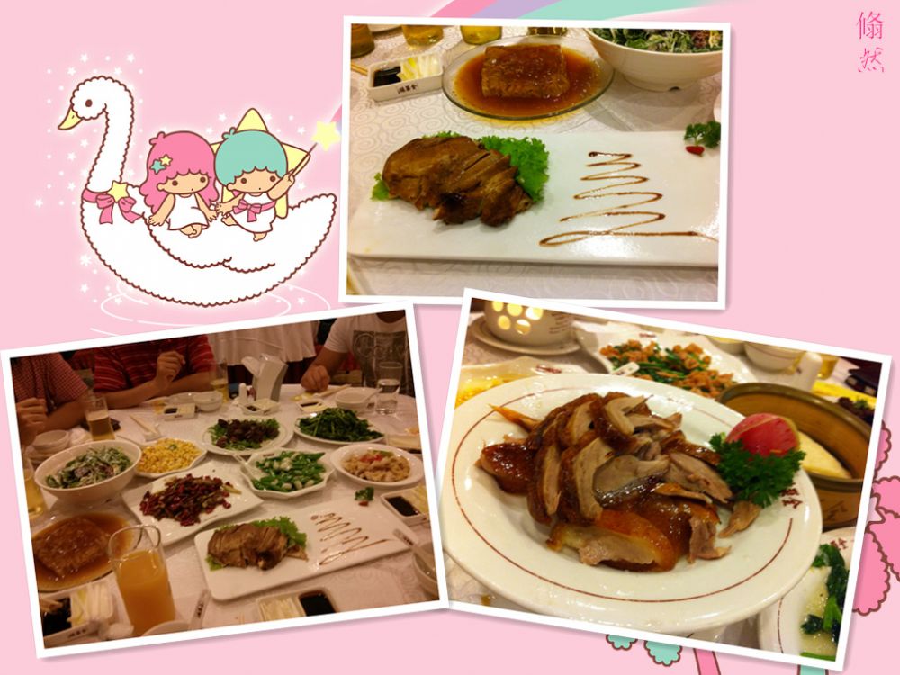 我们一直逛到五点多,实在走不动了,看时间还早,一抬头看到一家足疗店,看看我肿得胖乎乎的丫丫,毫不犹豫就进去了。我和LG享受完,回到宁夏大厦,没想到同学已经在大厅等我们好一阵子了,难道是我听错时间了?刚好一个外地同学到北京出差也在,于是一行人来到全聚德,与同寝室的密友汇合开始胡吃海喝。