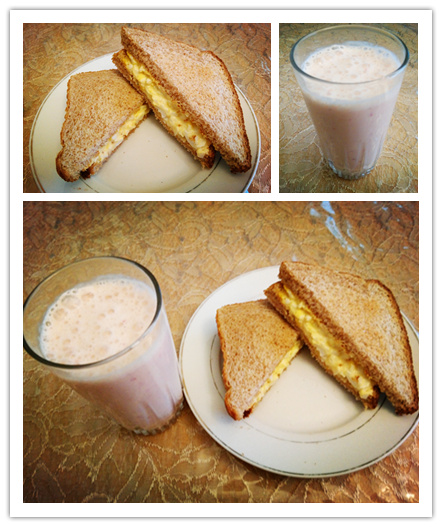 爱心早餐系列第十六款—全麦鸡蛋吐司和草莓芒果香蕉smoothie
