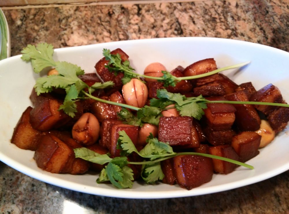 炉上砂锅,浓汤慢炖东坡肉。脂肥红瘦,赤酱调黄酒。酥嫩香甜,飞燕抛身后!今知否?环围腰柳,俏影难依旧!