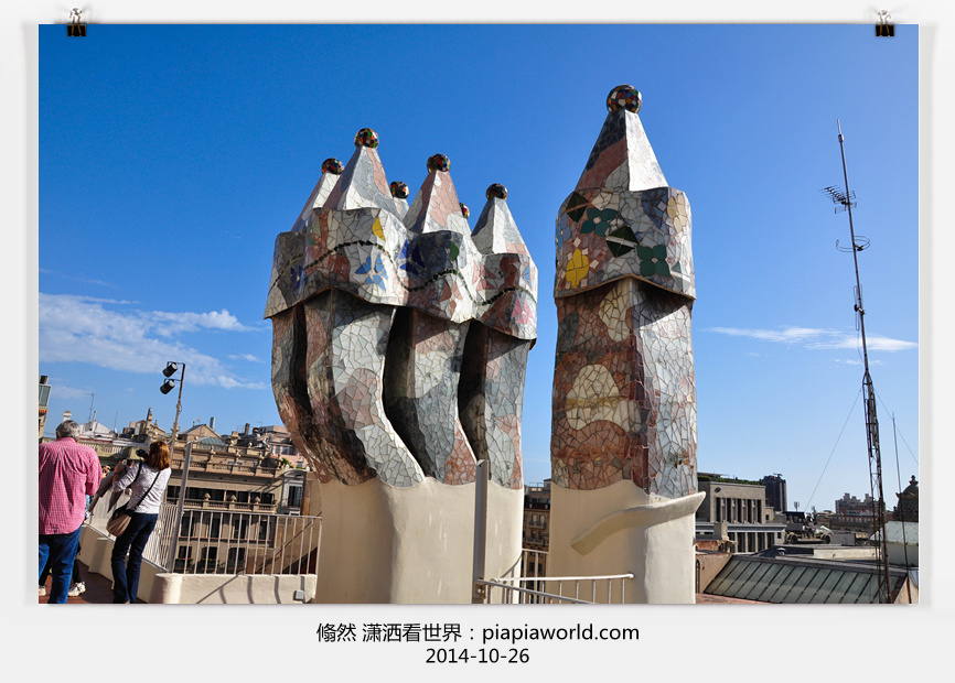 然后信步走到米拉公寓,这个也是这次我们不准备进去的景点儿,也刚巧它在维修,只有屋顶的琉璃烟囱远远地流放异彩。