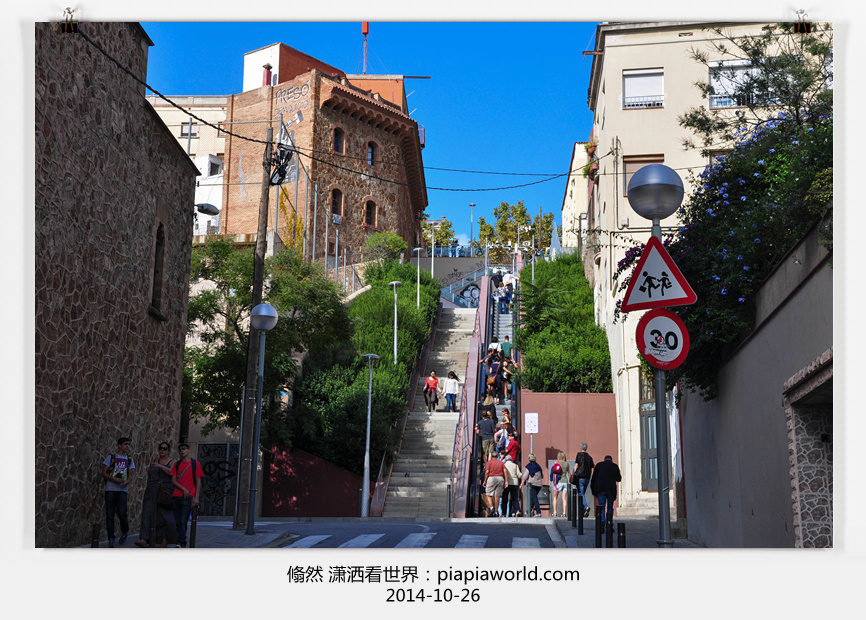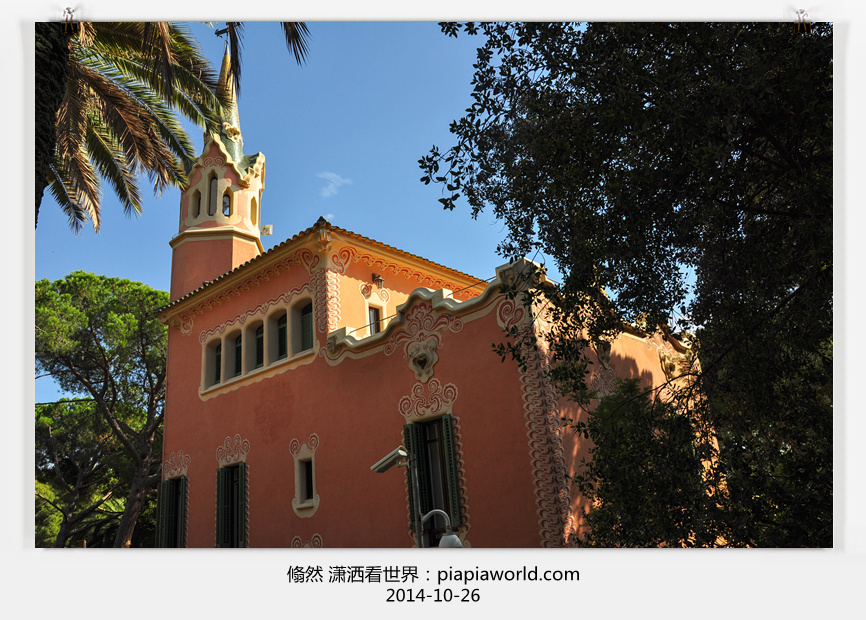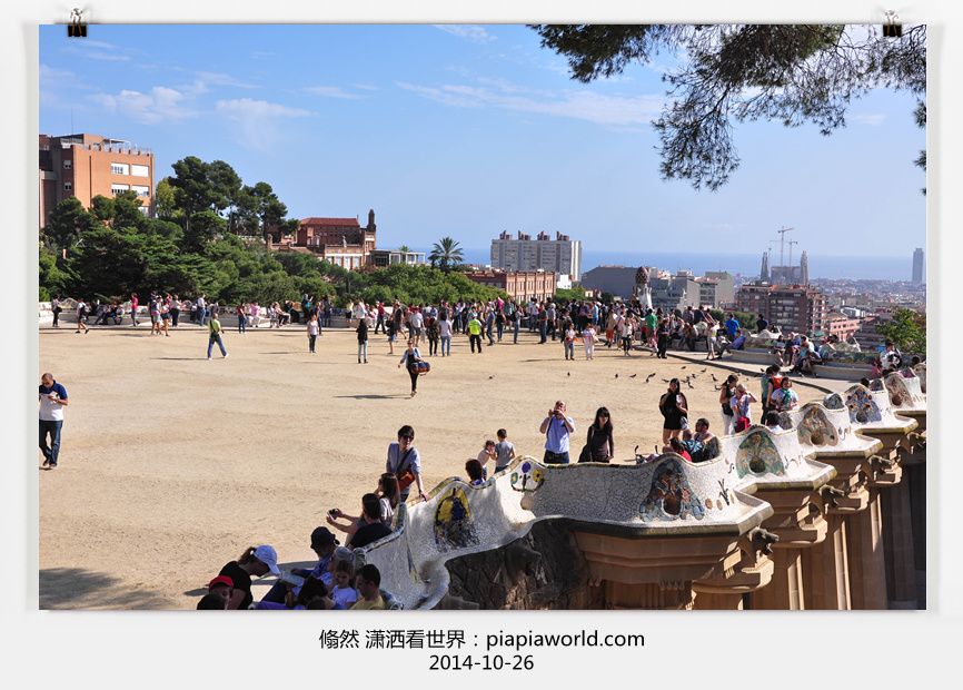 出来前在商店买了些纪念品,因为西班牙是第一次来,所以冰箱贴和烛台各收一个,还给小女买了个性杯子,这样出来时已经12点半。看时间还可以,决定到古艾 尔公园,地铁去,下地铁走一段被称为鬼见愁的上坡,但还可以呀,因为好长一段都是电梯。可是到了公园排队买票的时候,却被告知公园核心部分要下午三点才能 进去!所谓核心部分就是最上镜的那些高迪设计的各种西班牙特有的瓷砖拼花,蜥蜴雕塑,但三点进去对我们来说肯定是不可行的,只好进去大概参观一下其他核心 之外的部分,还不甘心地从某个角度偷窥了一下那里的流光异彩。