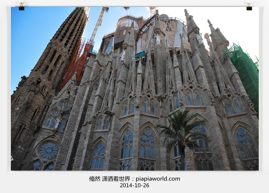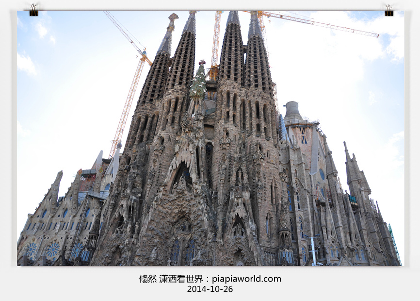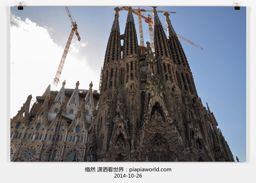 从公园出来,又乘地铁来到圣家庭教堂,这里有些地铁站很旧,又闷热,和纽约的地铁有一拼,让我们穿着T恤都冒汗!站在圣家庭面前,再一次被高迪的天才所折服,之前看的公寓和公园展现的是无直线,琉璃光彩,别具匠心,这个教堂却带给你震撼和崇敬之情。