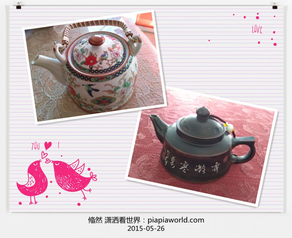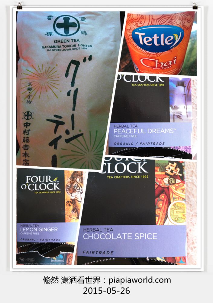 可悲可叹的是俺的品茶知识实在是一穷二白,一点儿茶品位都没有,曾经看见朋友圈里那些茶大虾们晒出那么多的茶文化,俺总是一笑而过,成过眼烟云,现在才知 道书到用时方恨少,来自历史悠远的茶国度的俺,此时居然一丁点儿的忙都帮不上,眼睁睁地看着小魔女在那儿胡作非为地糟蹋各种茶,还煽风点火地买来更多的茶 让她胡来:Chai,earl grey,herbal tea……什么桂皮味,柠檬味,巧克力味,最后居然还泡出了肥皂味!小女每天晚饭后都要来一壶这么乱七八糟口味的茶,边啜饮,边聊天或写作业,有时上中文 学校也要泡上一杯,眼见咱博大精深的茶文化在小女这儿得到任性的传承,俺虽然心情复杂,也还是感到了一丝欣慰……