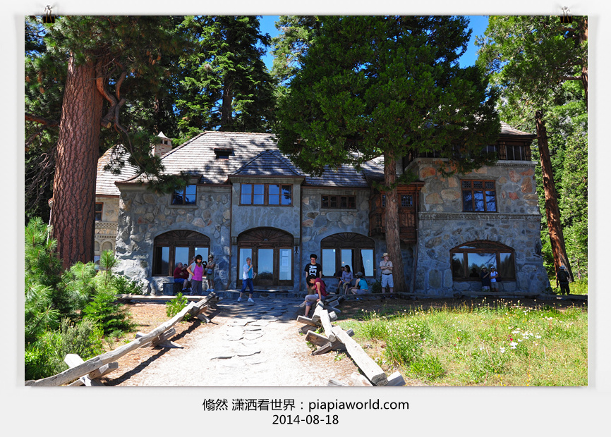 然后又到有些北欧风格的Vikingsholm宅邸参观,再走了一个Eagle fall trail,到了Lower fall,实在没啥意思,太热,上面还有一个upper fall,也一定是个笑话(夏天看加州的瀑布?never mind…….),放弃。又从刚才下来的大坡爬回去,累得我们寸步难行,LD只好自己去取车,我们娘仨在公园的牌坊前招摇地等。