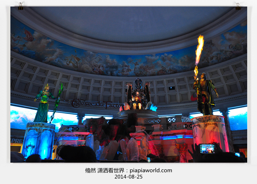 到Mirage的Craving Buffet吃饭,还不错,品种虽然没有Bellagio的多,但酒居然随便喝。吃完就继续我们的不夜城游荡,先到Forum shop看了那个Fountain show,然后到ceaser palace,先把孩儿们安顿好,我俩玩了一会儿slot,可惜哗啦啦地也没把我在旧金山的损失赢回来。