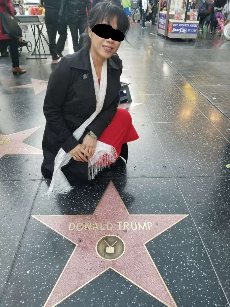 终于找到了成龙的名字,旁边紧挨着是买水果的小摊。果汁滴下来,地面有些粘腻。赶快蹲下来,拍一张。身后两步之遥,也有人围成一圈拍照,我以为是李小龙的,过去一看,是我们的总捅大人的。好吧,我已经政治不正确了今天, 也没什么好顾虑地了,再蹲一下: