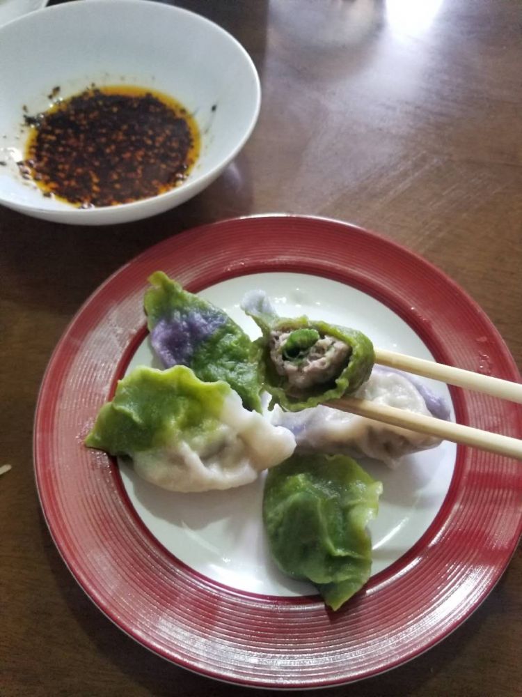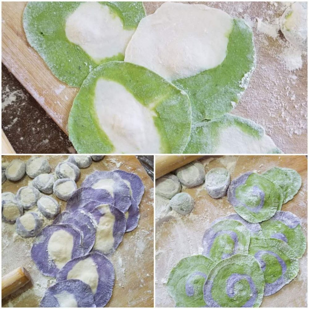 3: 搓面剂子的时候,彩色的包住白色的。(白菜饺子,紫裙饺子,梦幻饺子)