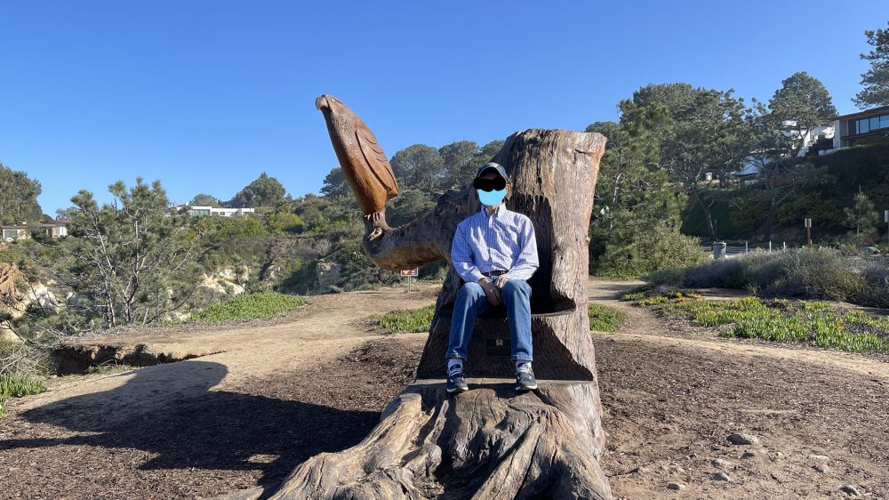 于是沿着海边,慢慢开回来。路边看到一整棵大树做的木雕。