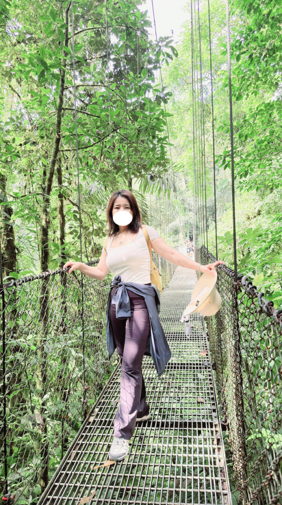 三个小时的hiking,回到visiter center,才发现美丽的Arenal火山就在观景台前方。咔嚓咔嚓,拍照打卡,然后就驱车回到Ecoglide Arenal Park。 时间刚刚好。Hanging Bridge Park: 推荐指数: 10/10