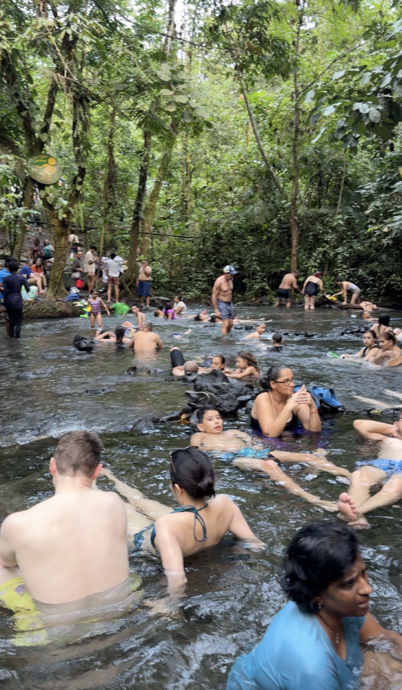 回程好像比去时时间短很多。到了我们的车里,看看时间,回旅馆有点太早。于是我们决定去泡免费的温泉河, Rio Chollin,我叫它野温泉。所谓的野温泉,就是一条火山温泉水流下来的河。上游时La Fortuna最著名的温泉度假村Tabacon。我提前两个月预定,Tabacon已经没有房间了。Day pass也没有了。所以有想去的朋友一定要提前预定。