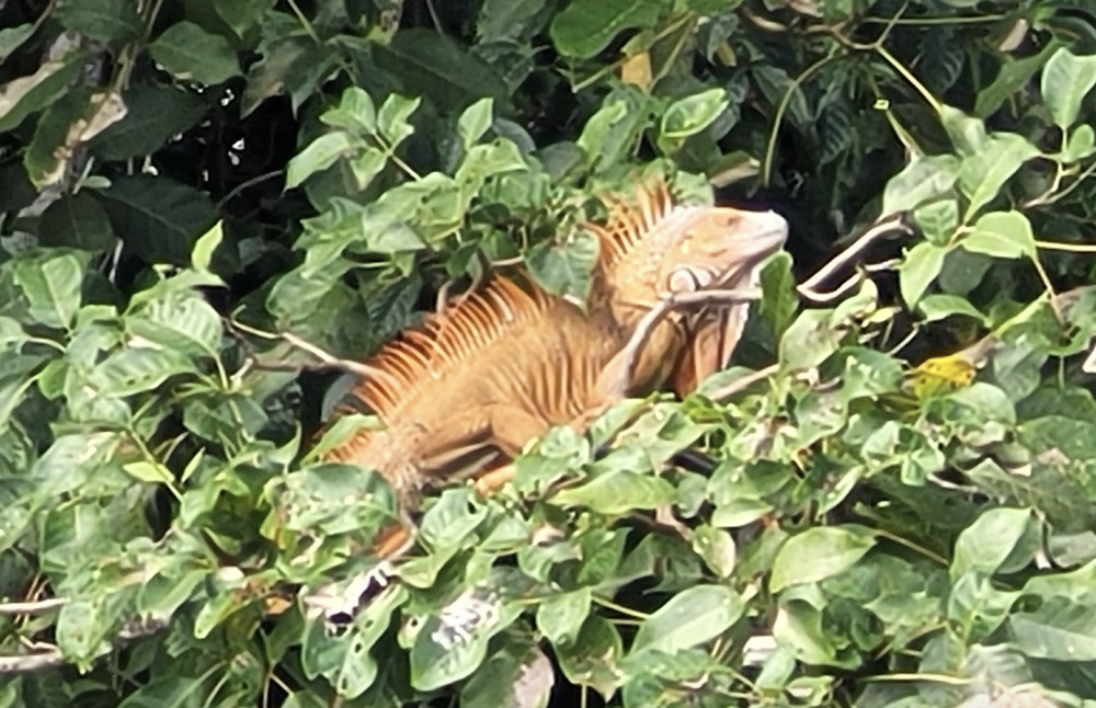大巴缓缓来迟,车上几乎坐满了。 导游的英语还不错。路过一座桥,司机停下来,导游指挥大家往桥边的树上看,树上趴着很多Iguana。导游说桥头的小饭馆是他的朋友的。许多年前,一只开得不温不火。有一天晚上,餐馆老板把蔬菜忘记在后院了,结果一晚上,后院招来了20多只Iguana。他觉得有意思,第二天又放点蔬菜在后院,结果一下子又来了很多只。于是老板就天天喂蔬菜,然后他后院的树上就趴满了Iguana。然后就有很多游人慕名而来。。。