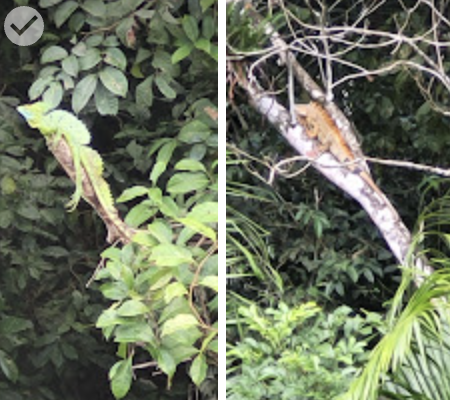 嚼完豆子,大家跟着导游回到码头。于是上船开始观看野生动物之旅。看得最多的是各种各样的水鸟,然后是Iguana,雄性的颜色橙黄亮丽,光鲜耀眼,雌性的灰扑扑的,不怎么醒目。树上有猴子,树懒,蜥蜴。。。猴子看到了三种,一种是黑背,棕色肚子的,一种是白面黑猴,还有一种是全身都是棕金色毛发的。这种全身棕金色的猴子,据导游说,全球只有8只。他说那有可能是基因变异。母猴子是普通的黑背棕色肚子的,如果看到生出的宝宝是全身棕金色,会把宝宝咬死。所以全球只有8只。我怀疑他是瞎编的。
