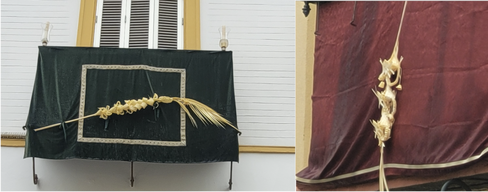 吃完饭继续溜达,路边的建筑阳台或窗口都挂着棕榈树叶编织的装饰品。我估计是和复活节宗教活动有关。