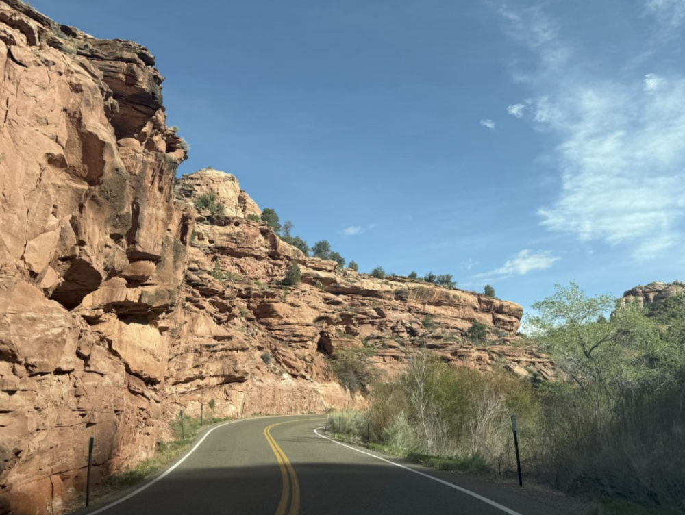 Natural Bridge景点回来,我们就去开去scenic road。公路大概有四五英里。路边的景色真的是超级美,超级震撼,感觉不像地球上的山峦 。公园的官方介绍说很多火星或者外星的电影都是在这里取景的,我丝毫都不怀疑。因为那种五颜六色的岩石,笔直的峭壁,看起来真的不像地球上的山。