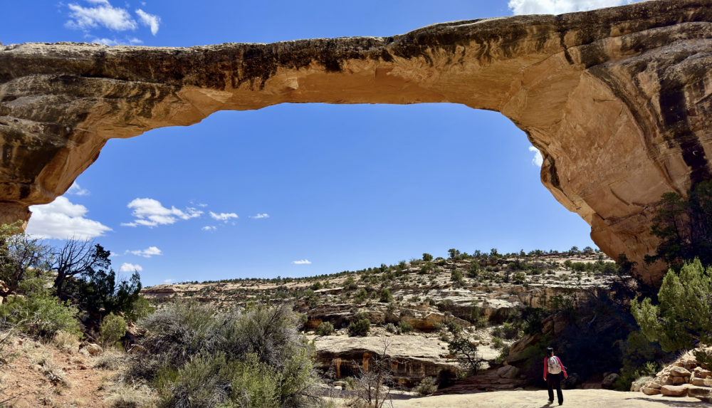 风很大,谷底的沙子扬起来有一种沙尘暴的感觉。一张嘴说话沙子就会飞进嘴里。溜达一圈,感叹一圈,拍照打卡,然后我们就直奔 Natural Bridge National Park 。