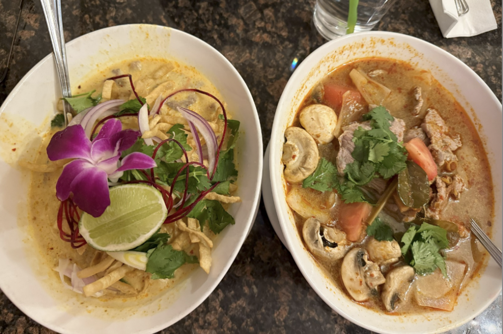 到达mall小镇是下午五点多,我们决定先出去吃东西。 可是这么出名的一个旅游镇,饭店不多还都超级小,每一个饭店门口都是一大堆的人在排队 。我们找了一家泰国餐馆,也是被告知要排队要等三十到45分钟。 我们点了泰国面,面条口味还可以,就是超贵。一碗面条23块钱,我觉得超级不划算。 所以名字就不说了,不推荐大家去。
