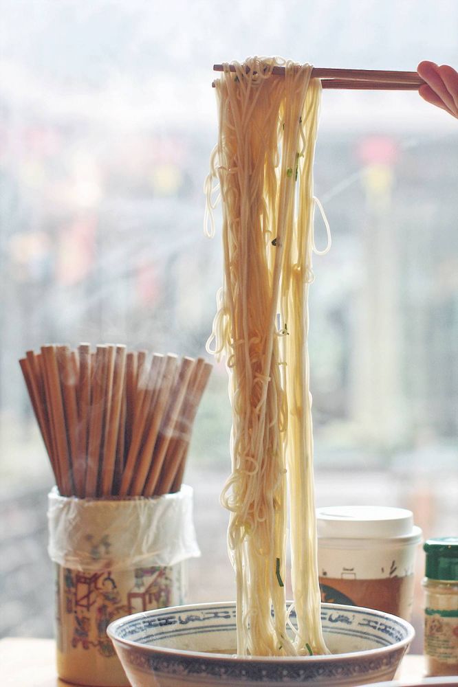 等焖肉在烫面下方回热时,我吃上半碗的素面。