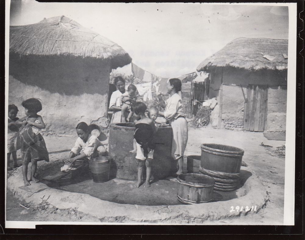 朝鲜佃户妇女在井边洗衣服,和俺以前在国内用过的洗衣神器一样,搓衣板。也是怕老婆人士传说中的一个物证。