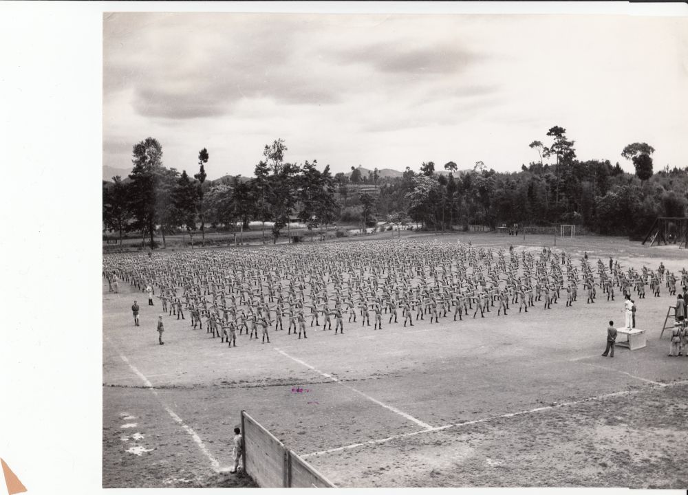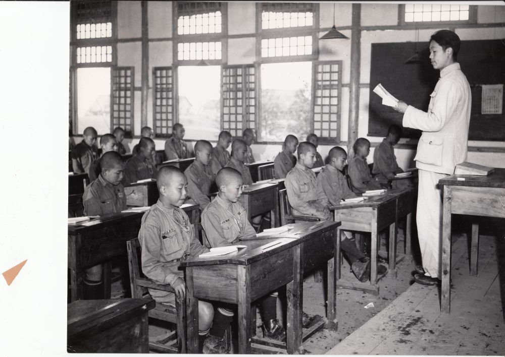 12月26日,空军幼年学校在灌县蒲阳场举行了第一期开学典礼。这天,航委会副主任黄光锐来灌县蒲阳场空军幼年学校主持典礼,这算是补行的一次开学典礼。直至1941年秋,为接纳逐年增加之新生,校方才开始陆续新建校舍。本着勤俭节约的原则,学校发动师生,就地取材,建成了竹筋泥巴墙、稻草盖顶的大礼堂。学校占地500余亩,拥有校舍200余栋,虽竹篱草舍,茅茨土阶,但简单朴素,依山傍水,毗邻场镇,精心布局,井然有序。此外,校内还建有大操场、游泳池、滑翔场、浴室、钟楼、中山室、交谊厅、医务所、劳作室、特务连、实验室、飞机库等。