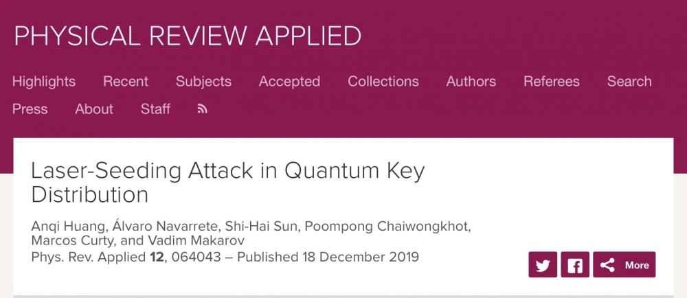 当时上海交大的论文在网上arXiv预收录文库发表后,中科大的某院士专门撰文作了回应,他的原话是:“这类攻击早在二十年前就已经被提出,而且其解决方案就正如文章作者宣称的一样,加入光隔离器这一标准的光通信器件就可以了。”听上去他只要动动手指头就能轻松化解,该论文应该只能在网上挂挂而己没多大价值。但是出乎意料,今年三月上海交大的论文也在高挡期刊(Physical Review Applied)正式发表了。我想科学总归是科学,谁也不能一手遮天吧。