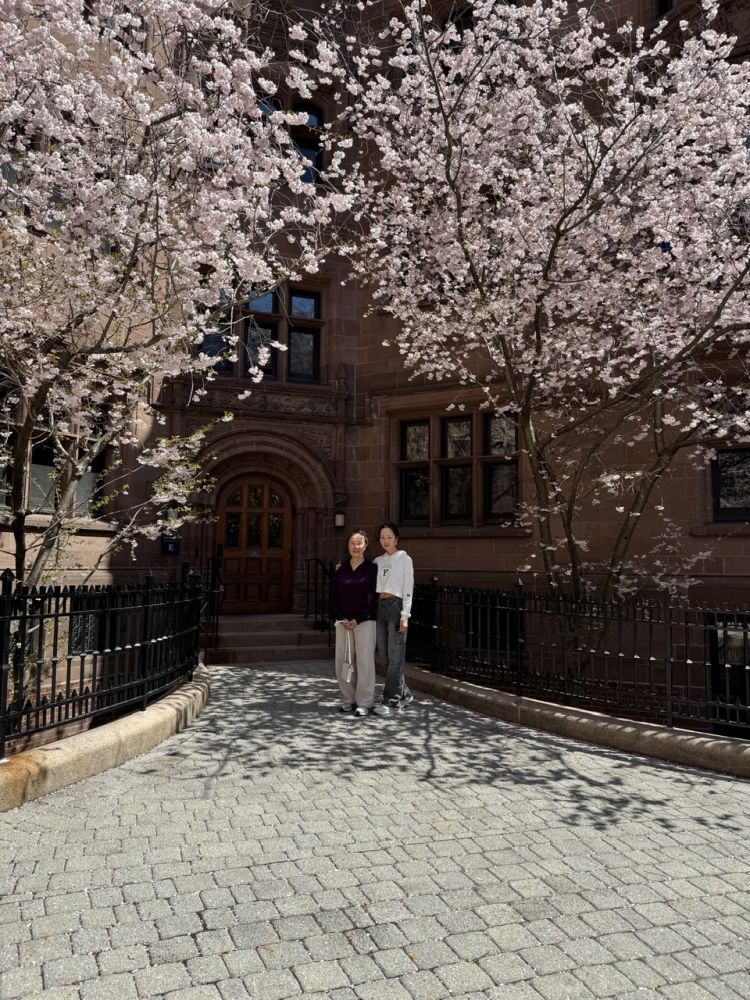 最后这张照片的背景不是樱花,而是星花木兰 (Magnolia stellata),这是一种早春开花的木兰,原产地也是日本。星花木兰花朵通常是纯白色,也是先花后叶,很容易被误认为樱花。近看星花木兰的花朵较大、花瓣较多,且呈星状,与樱花有明显不同。星花玉兰树高姿美,盛开时繁花锦簇又带芳香,实属早春花卉中的姣姣者。星花玉兰、樱花和水仙花可谓是早春三友,它们一起为耶鲁校园增添了不少光彩。