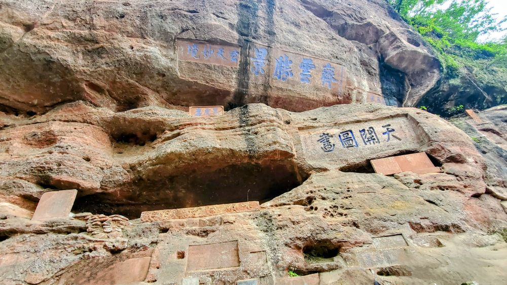 穿过一天门,就是齐云山精华之一真仙洞府。洞内崖壁峭立,怪石前俯,壁上摩崖石刻“天开神秀”、“亘古奇观”、“齐云胜景”...,不胜枚举。历代文人雅士:朱熹、唐伯虎、徐霞客、王阳明、戚继光、海瑞等等,都留下了墨宝。