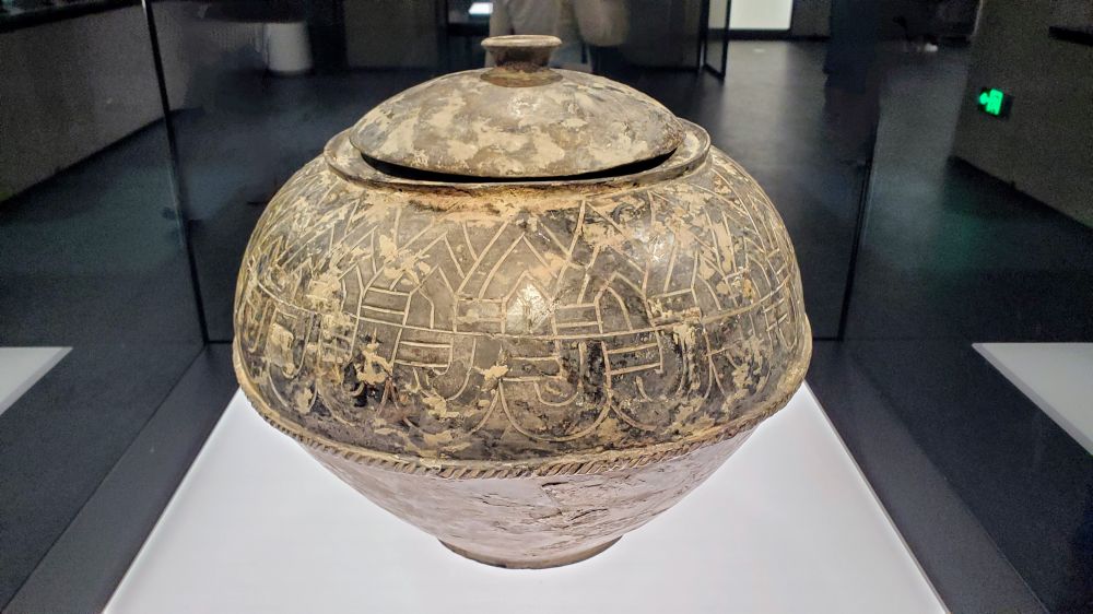 #20 黑陶刻纹盖罐: 新石器时代嵩泽文化(距今约6000-5400年),古人审美能力不错,花纹至今并不过时。