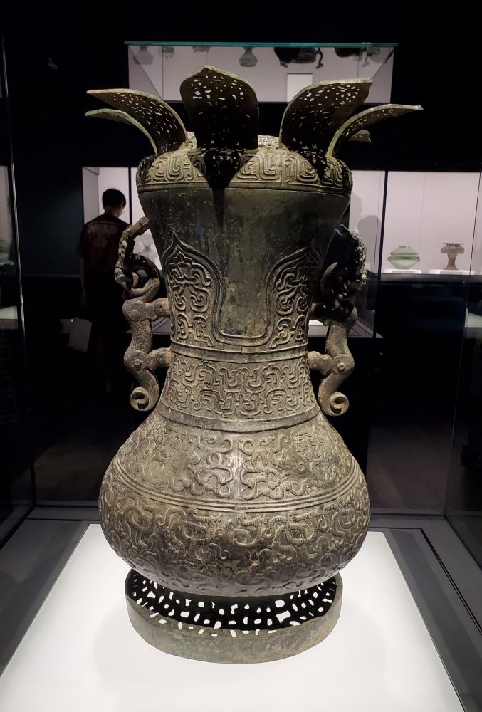 #11 莲斑瓣盖龙纹壶(春秋中期。公元前7世纪上半叶-公元前6世纪上半叶),酒器