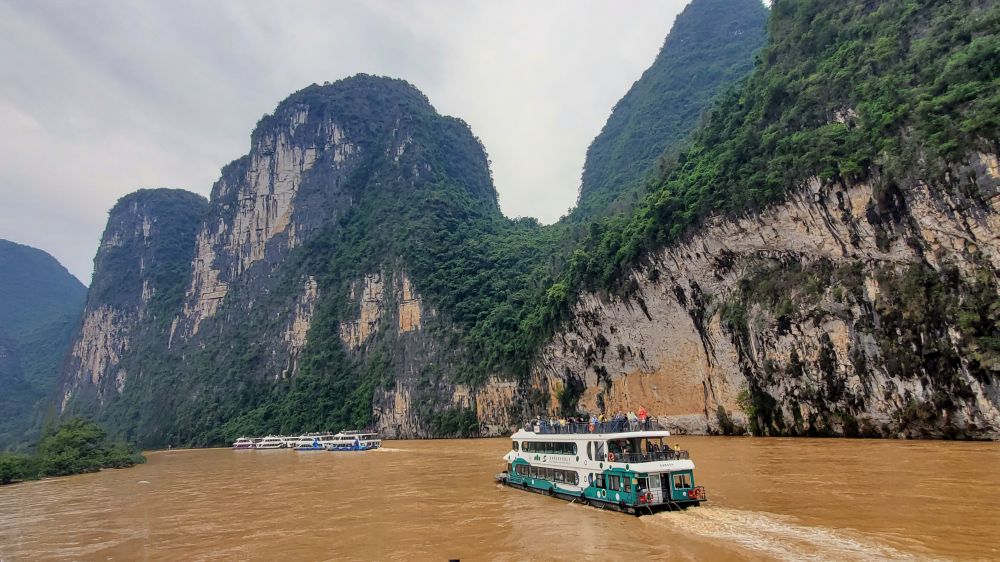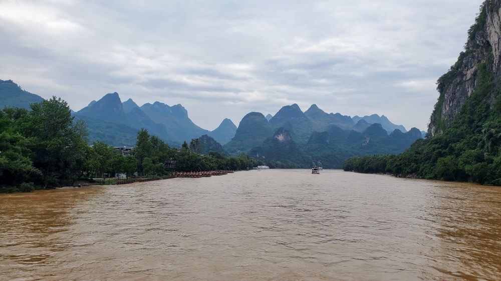 江面浑浊,泥沙混着山泉,带走了落叶和树枝。没有朦胧的山峰倒影,没有红帆渔舟穿行。漓江显露的是壮阔、是生命本身的律动。