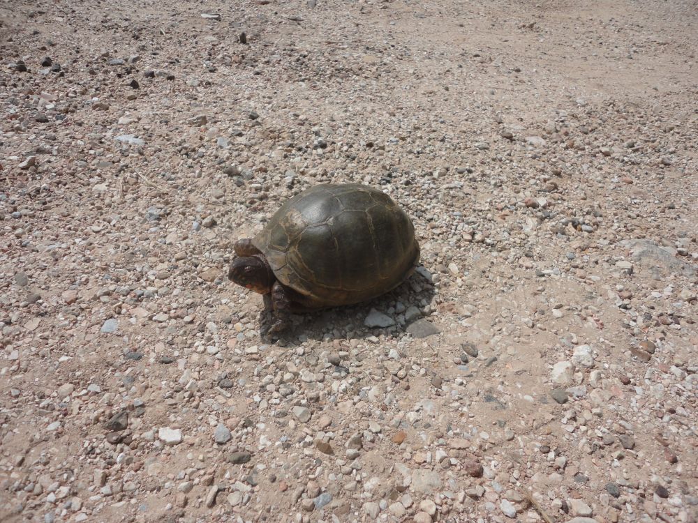 一个小插曲发生在我们停车的时候,一只肥肥胖胖的小乌龟就那么大模大样的在路边晒太阳,怕他被过往的车辆不小心碾过,老公把车停在他的身边,我跑下去把他拿起来放到了里面小溪旁边的草地上,看着他伸着小脑袋可爱的样子,我好想把他带回家。看他小小的,一拿起来我感觉最起码有两斤重,太可耐了,我最后真的是好不舍得把他放下,怕他的爸爸妈妈担心他,希望他别再这么贪玩,跑到大马路上来吧。