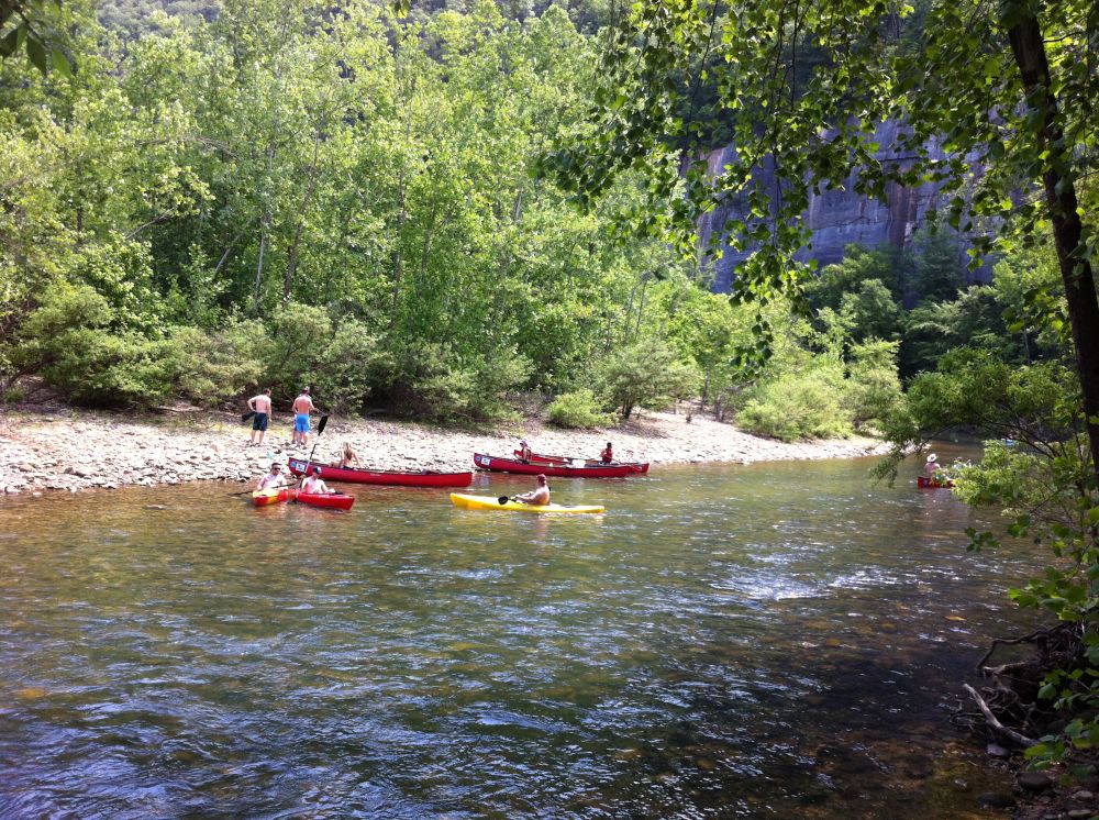 因为联系不到朋友,我们决定先开车在附近转转再决定最后去哪一处好好玩。山路开始陡峭,弯度越来越小,一下上来一下下去,我们误打正着的闯到了一处山坳,这里四面大山是天然屏障,围成了一处不小的露营场地,营地的一侧是缓缓地溪流,来这里露营的人们都聚集在溪水旁,拿着自己的小舟准备下水呢。