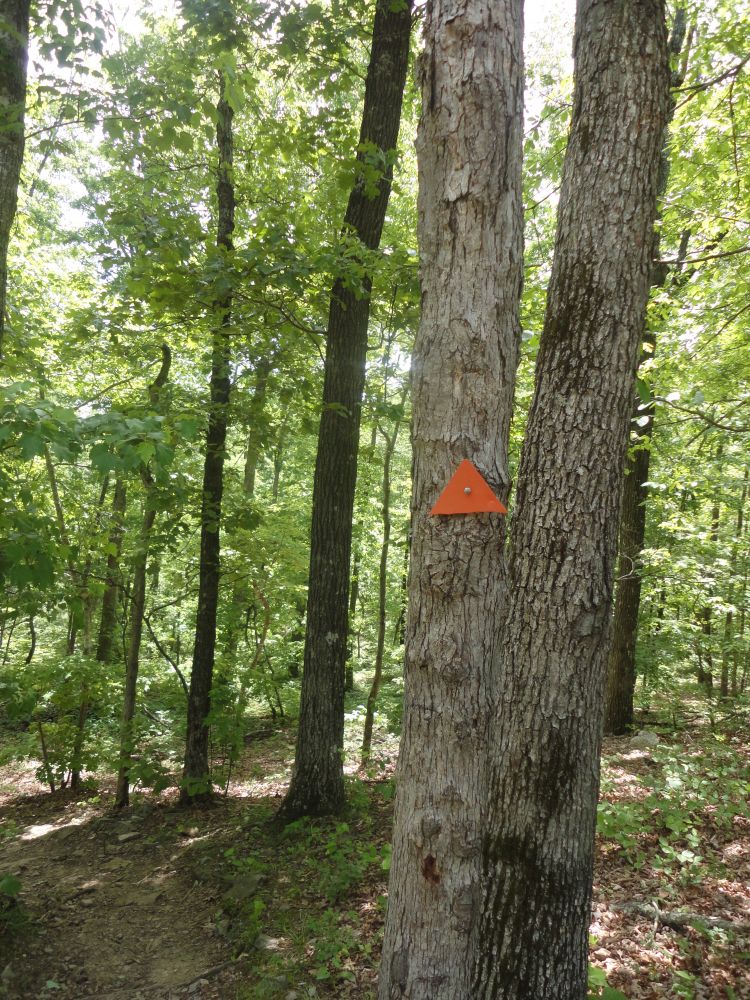 我们刚刚在车上吃了蛋糕和水果,要知道附近根本就没有任何的吃饭的地方,所以我前面说清晨放在车上的那些吃的真真好有必要呀,一路暴走,隔一段就可以看见那个桔色的路标,觉得路好像没有那么容易迷路,呵呵事实证明这个认识非常肤浅。因为森林太大,我让老公见了一根木棍拿在手中,总觉得怕遇到蛇之类的动物,事实证明这个预感非常的准确,这一切在回程我们迷路的时候都遇到了,听我慢慢讲故