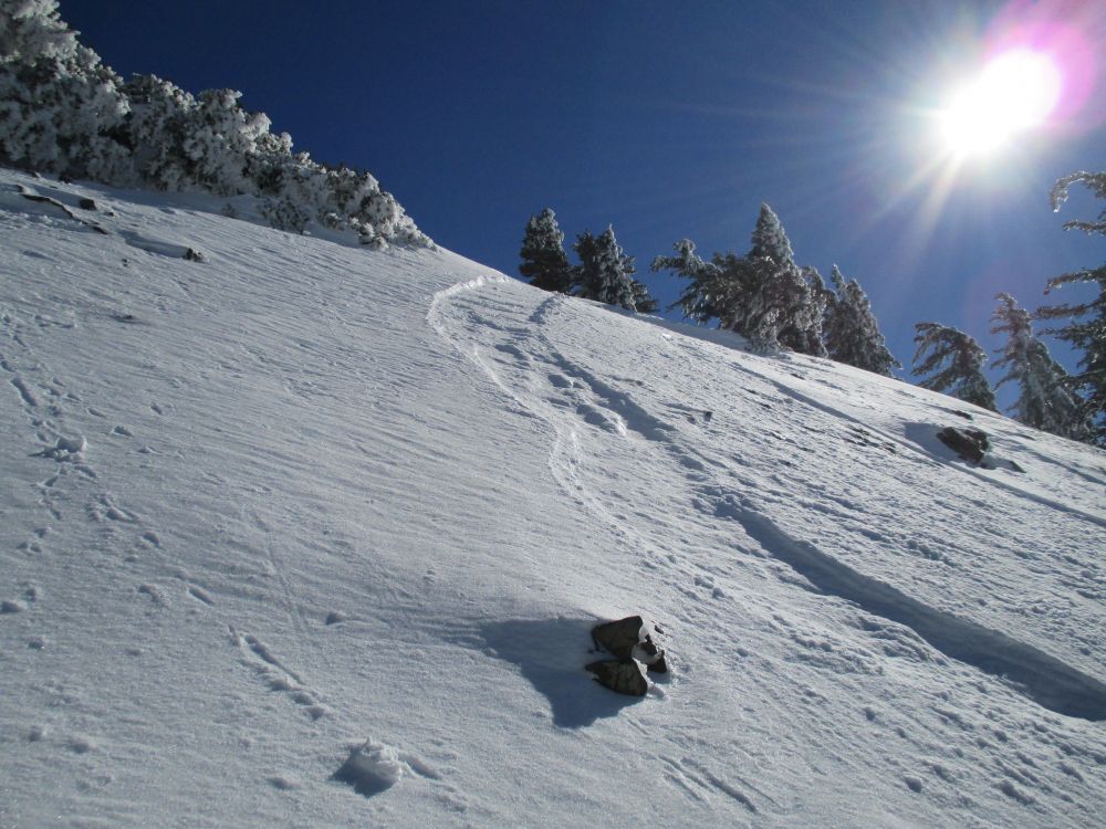 再看看他们从陡峭坡上滑下来的的滑板痕迹