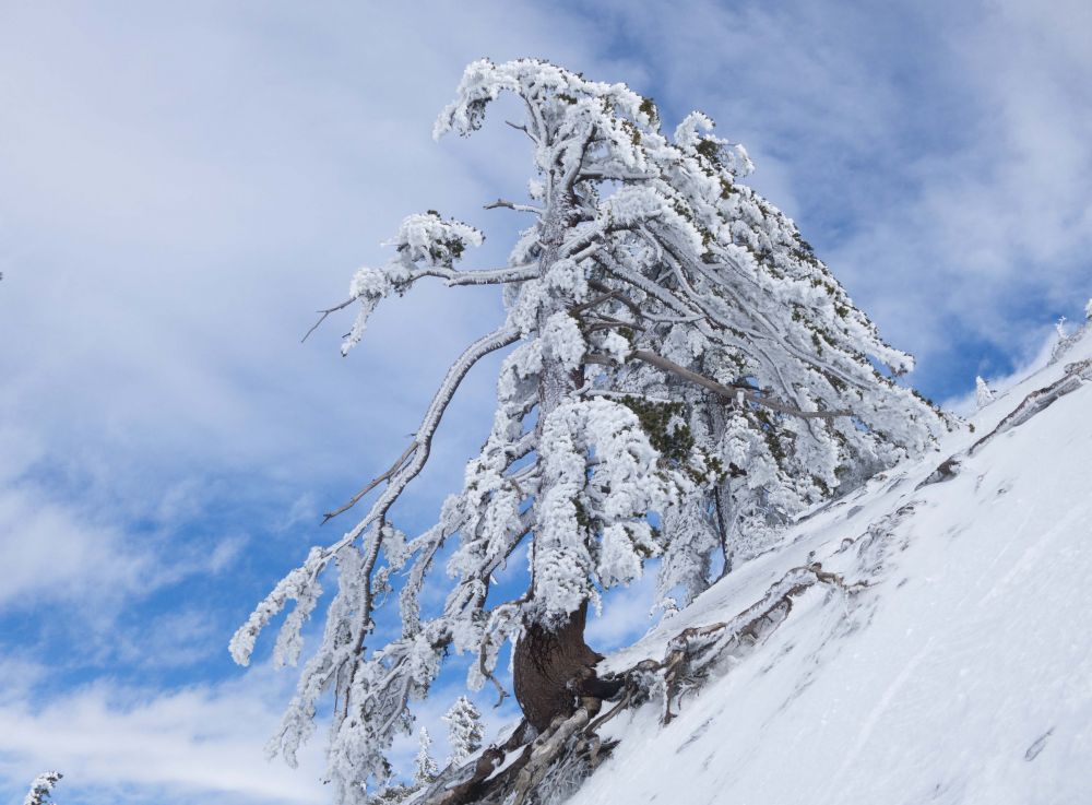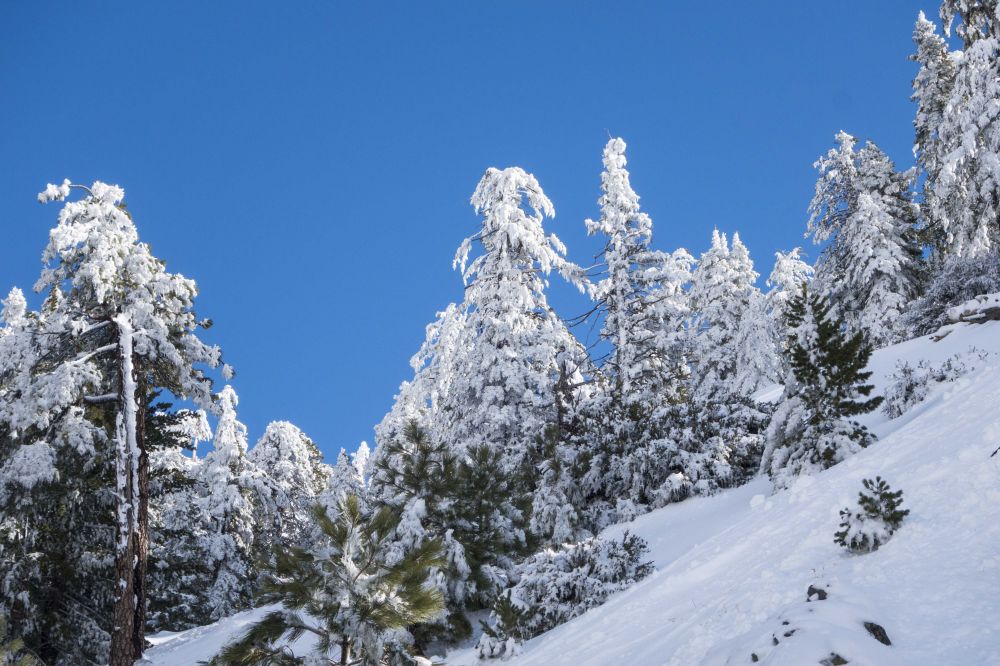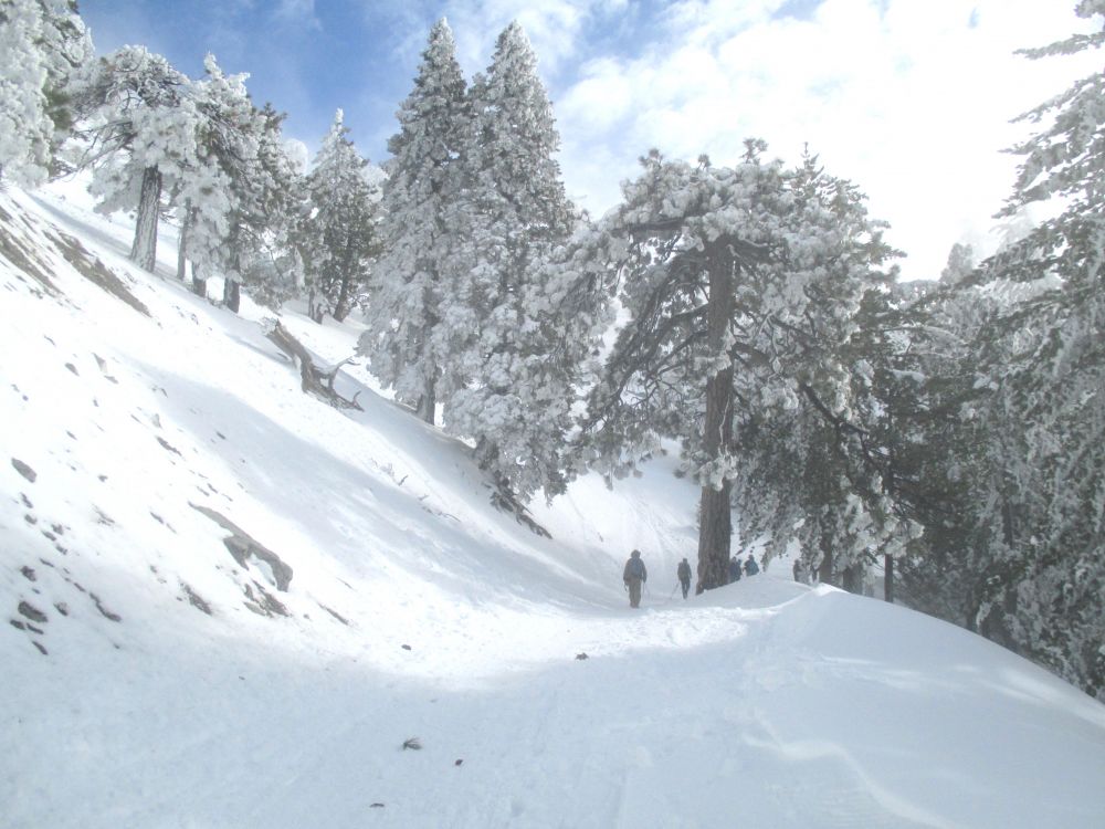 看到对面清晰的山上覆盖着皑皑白雪,连绵起伏从东到西一直延伸到洛杉矶西面,掩不住心中喜悦,周末可以爬雪山看雪景了,可又担心才下了两天雨,到周末会不会山上的雪都化掉了,树上还会不会有树挂?于是心里默默祷告,让山里的雪别化掉,等一等我们去拜访它们。