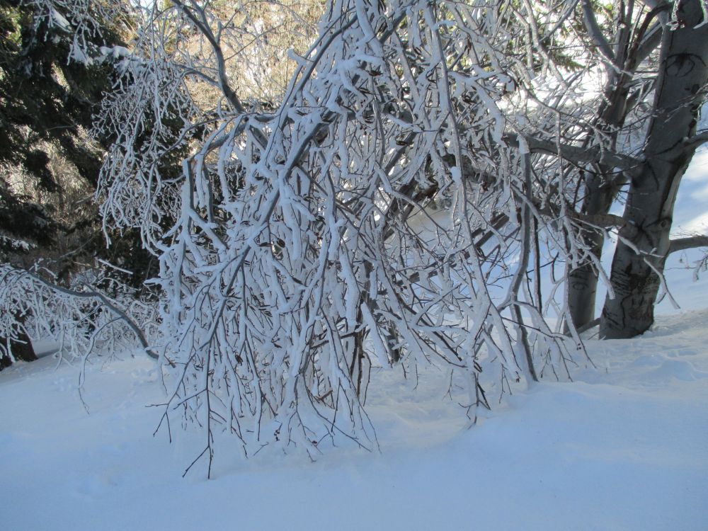 上到山上,大雪厚得都高过窗户, 山上就我们一队爬山的, 剩下的全是滑雪的,我们四处看景,发现附近的几座大山,无论是滑雪道还是随便山里任何地方, 都被滑雪的人们肆意放纵的用滑雪板在大山所有的地方画上了道道的S雪印,整个大山都成了滑雪人们的滑雪场,看到他们从山顶画着S快速冲下山爽歪歪的兴奋样子,真羡慕他们, 要是我现在也是18岁,我也一定去享受这般冒险带来的快乐和刺激,可惜廉颇老矣,还是乖乖的用脚走下山吧!可不敢冒险摔断我这身老骨头。