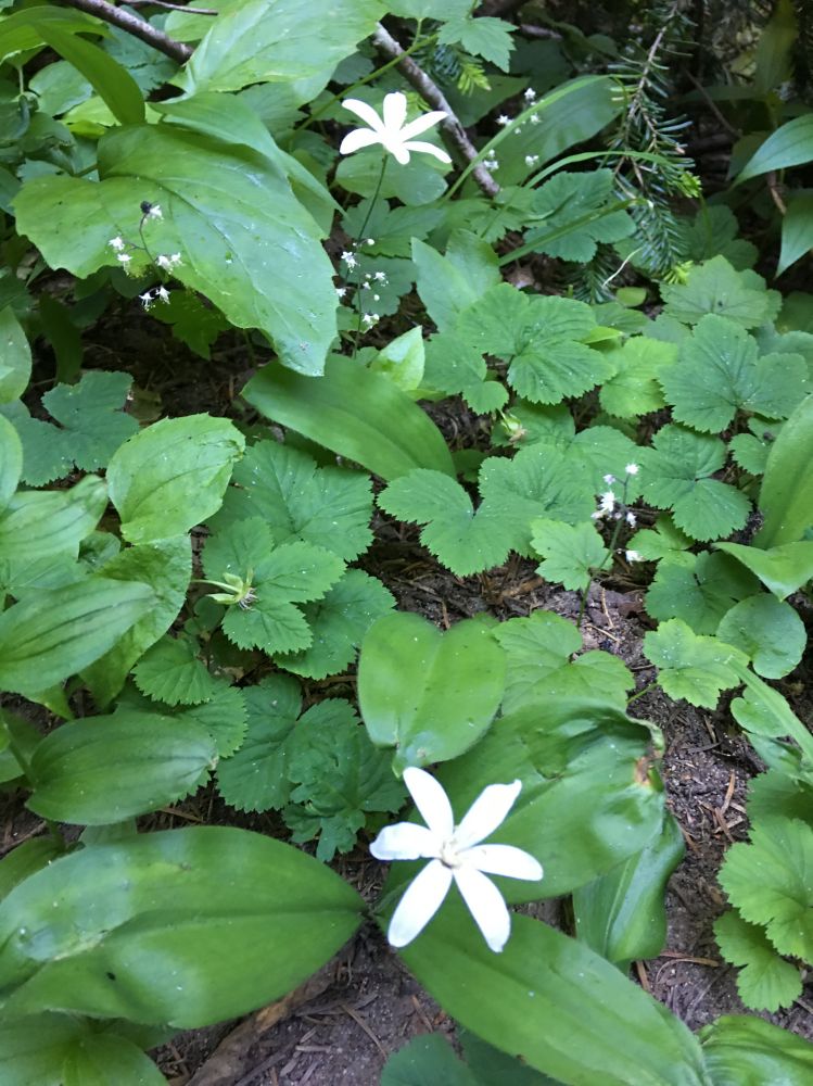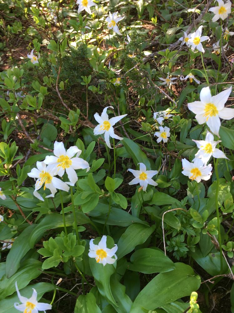 这时我一路憋着没出仓,想着到营地出仓, 没办法就决定在这片美丽的Vanilla leaf 旁解决。好在雷尼尔山没要求要把自己出仓的poop打包带走,我给自己挖了一个坑, 准备完事后将其掩埋。为了不污染者美丽的大山,没敢用带来的手纸,只好摘了两片Vanilla leaf来用,然后掩埋好,就当给这里的松树及花草上肥吧!