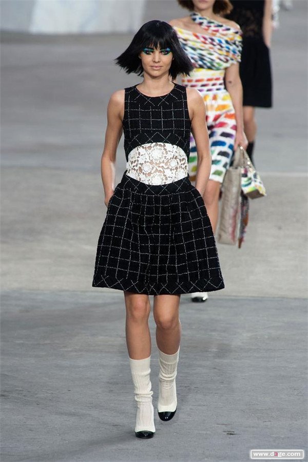 当初香奈儿春夏大秀曝光,我就特别喜欢中段有白色蕾丝这件,好别致喔