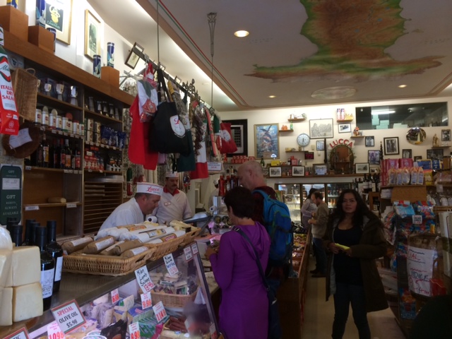 百年老店买Pizza材料。店的顶部画着意大利地图