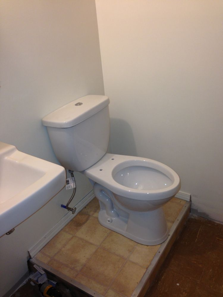 然后开始装坐便,底接好后,在上面铺了层Vinyl floor, 为了防水和好看,这是以前剩下的料。