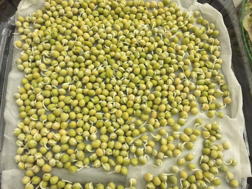 豆不用太密,因为它的根会发出来很多,太密的话有的豆根扎不到纸巾上,就只能牺牲了。像下图这样就有点密,一层密了都不行,就别提铺两层豆了。