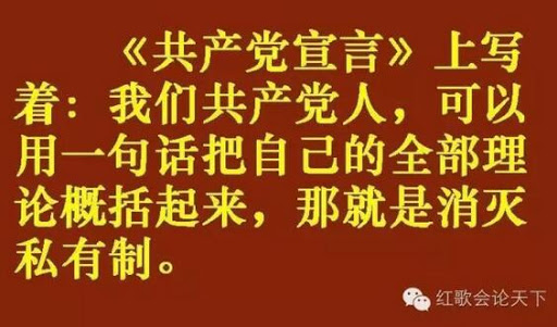前几年大肆鼓吹的“不忘初心”还记得吧?什么是初心呢?一直往前追就追到了马祖宗那儿,共产党的初心就是要消灭私有制。这几年可以说正朝那条路上狂奔着。。