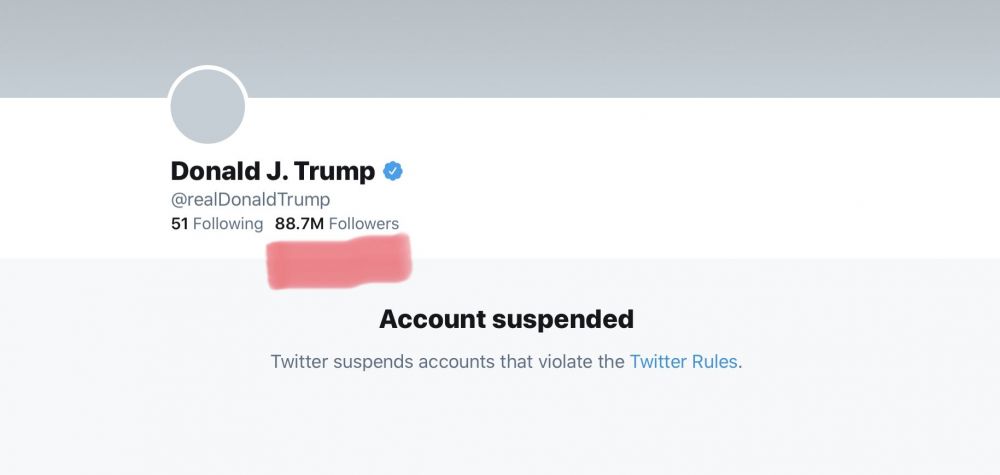 我一直有个想法,博主那副推特删掉川普账号的截图,可以稍加修改成为一面旗帜的式样,成为争取言论自由的象征。