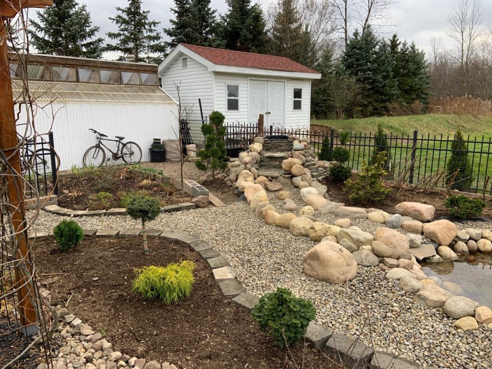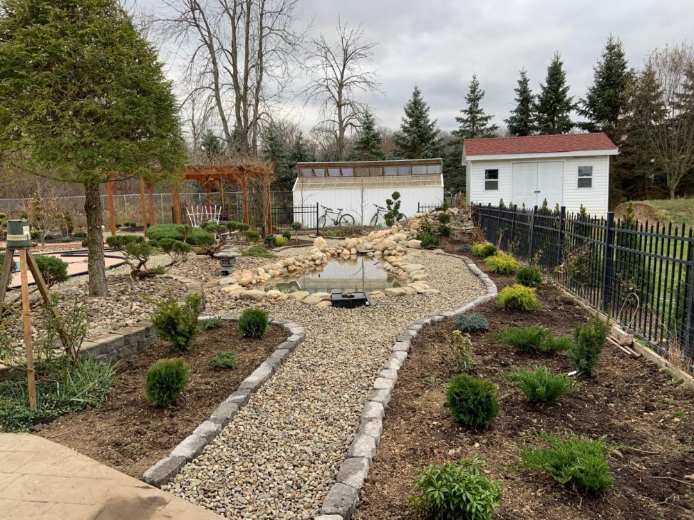 我跟大家伙儿唱个反调,地主兄的后花园绿色太少,灰色褐色太多,而且过个几年就会发现比较难收拾,如果不撒除草剂,就需要不停地拔杂草。不好意思啦,地主兄。其实相比较而言,一片草地更好收拾一些,开割草机一通猛割就行了。