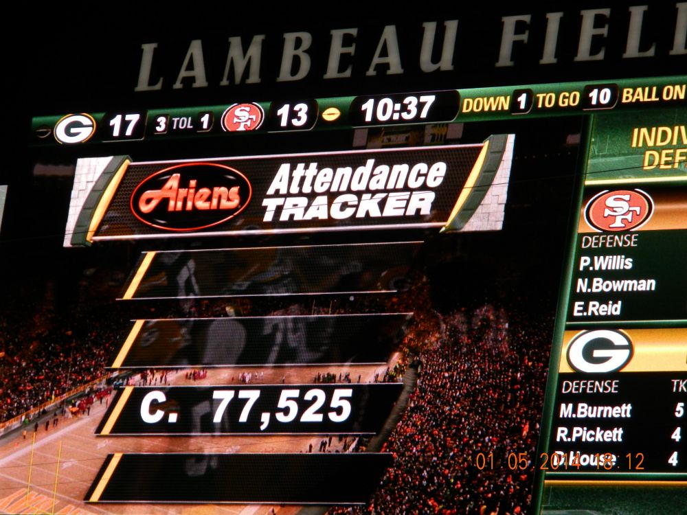 当听说49ers-Packers季后赛有3000张票没卖出去时,我就开始蠢蠢欲动说想去,虽然在TT没有得到响应(跟俺一起去冒傻气挨冻),但得到的是XDJM一致的鼓励和支持,至少大家没泼冻水说这人神经病或脑子冻冰。当时想法其实很简单,如果去Lambeau我宁愿冰天雪地去看季后赛-风和日丽的空场或是正常赛季的比赛有神马意思?