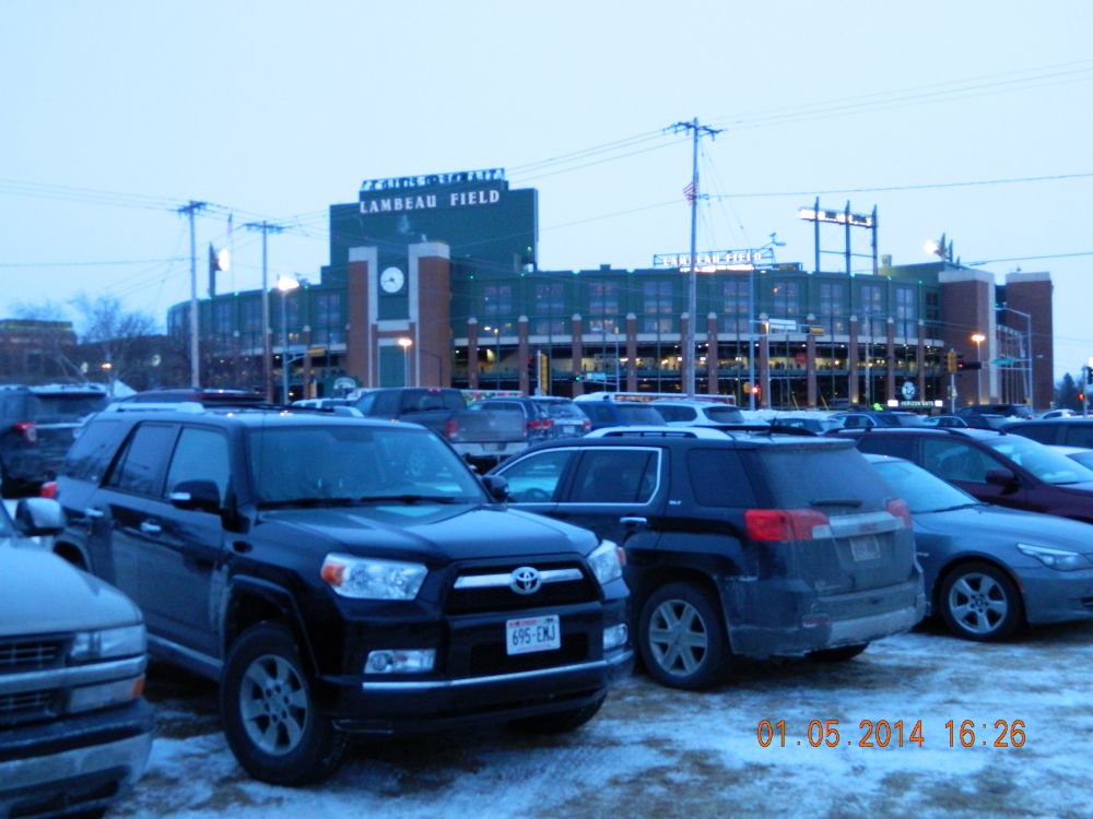 本想早点到,但事与愿违租车耽搁了一小时,再加上路上两次老警"护航带路",跟着警车(压阵)开了至少俩小时,到绿湾时球赛已经开始。