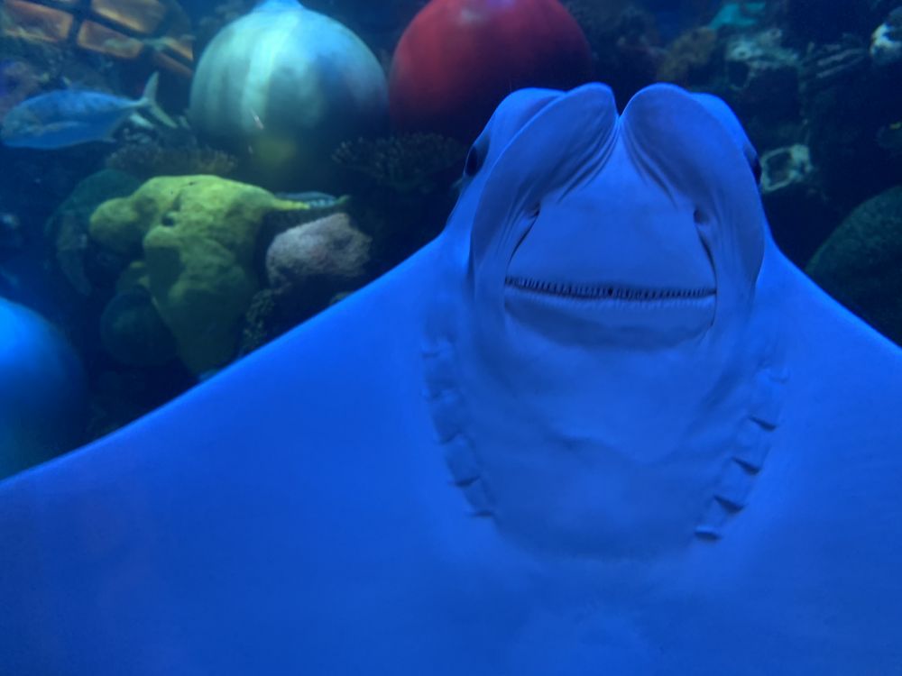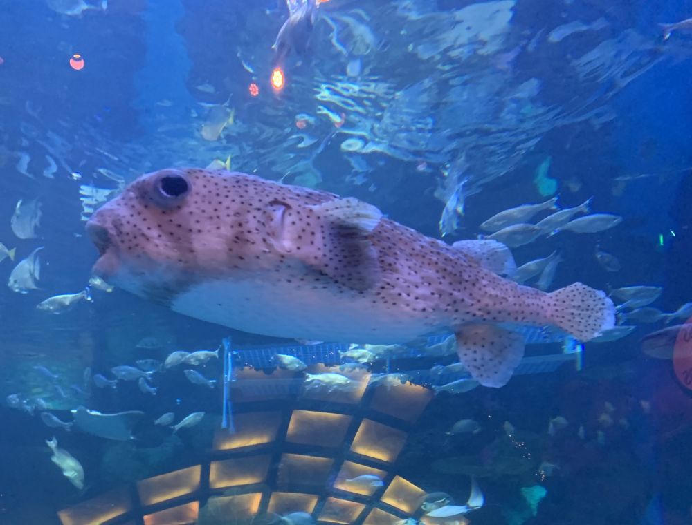 迪士尼乐园的海洋世界,比起香港的海洋公园规模可大多了,也许因为小时候看过很多鱼儿的表演,闺女在大三那年的暑假去了Marineland (Niagara Falls)工作了一个夏天,她十岁才学会游泳,水平大概也就是深水淹不死,除了蛙泳还不赖其他泳姿都不标准,反正是花钱请别人教的与我无关。没想到这孩子心还挺大飊上了大鲸鱼和海豚,赶上巨无霸们鱼尾扇一扇她就不知道被飞哪儿去了而彻底蒙圈,唉 就她那点儿水性,居然敢玩这么大的鱼,实在让人担忧啊。他们是最聪明的海洋动物,有个性有脾气还听得懂人话,当音乐响起他们的表演很卖力,当他们生病了就会停止进食,慢慢就自然死亡。。。每每想起被人类捕捉回来失去自由的鱼儿们,闺女就特别的伤感。是天上的鸟儿多,还是海里的鱼儿多,这个答案有木有呢?不管怎样这次却非常欣喜地发现鱼的脸是有表情的!像不像大白?