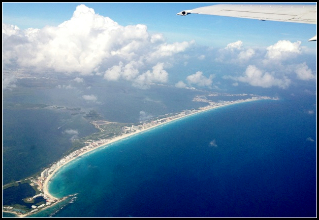 这是飞机机翼下面的墨西哥坎昆城全貌。(网上图片)