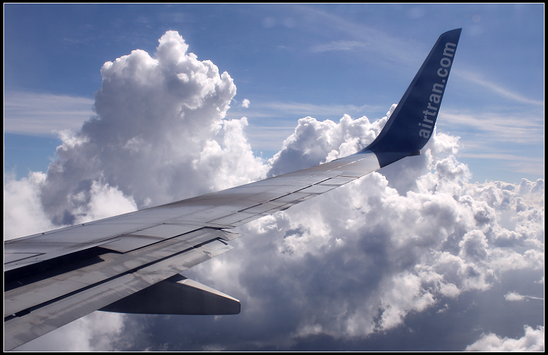 我们乘坐的Airtran公司的航班在云层中飞翔。